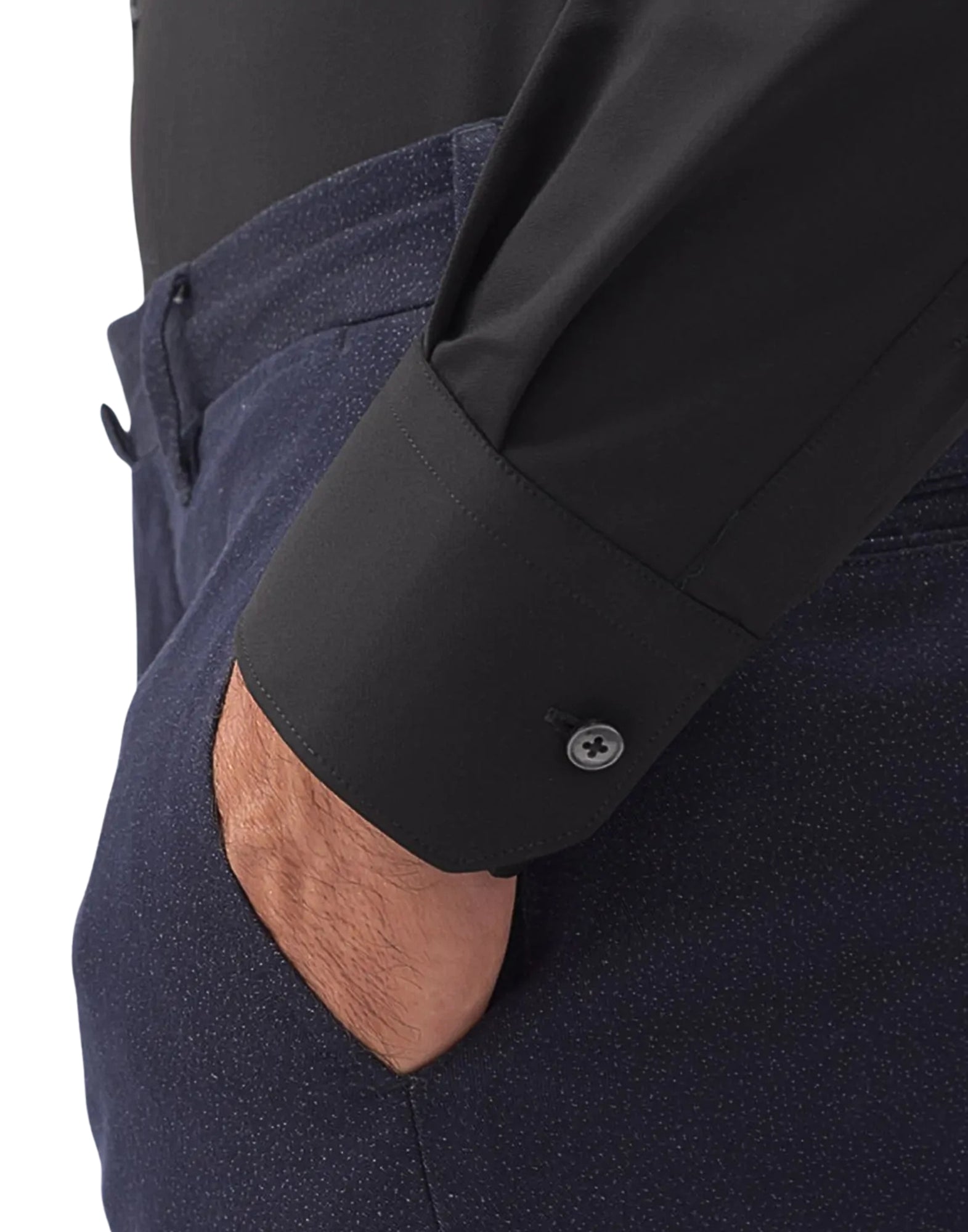 A formal, clean silhouette made with technical material, designed for moments when you need elegance, comfort and dynamism at the same time.